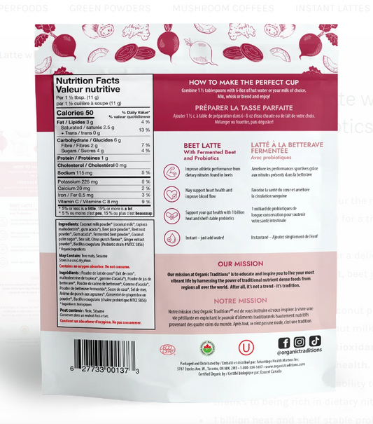 Organic Traditions -Organic Beet Latte with Fermented Beets and Probiotics - 150g