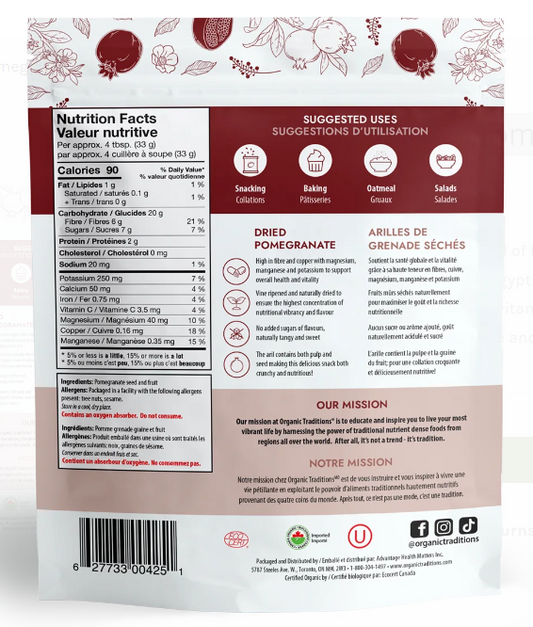 Organic traditions - Organic Dried Pomegranates - 100g