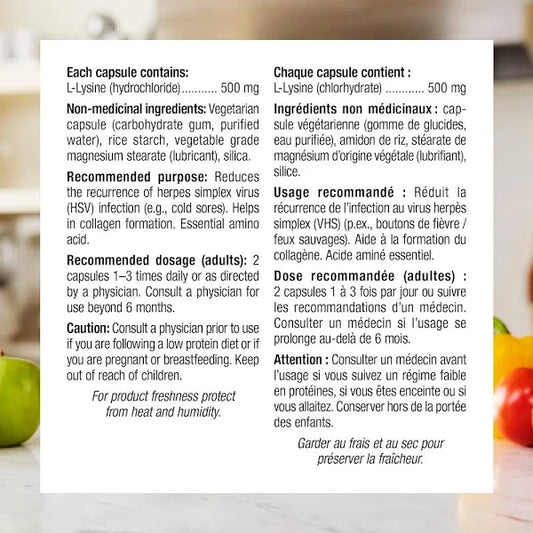 Webber Naturals L-Lysine 500 mg, 60 Capsules